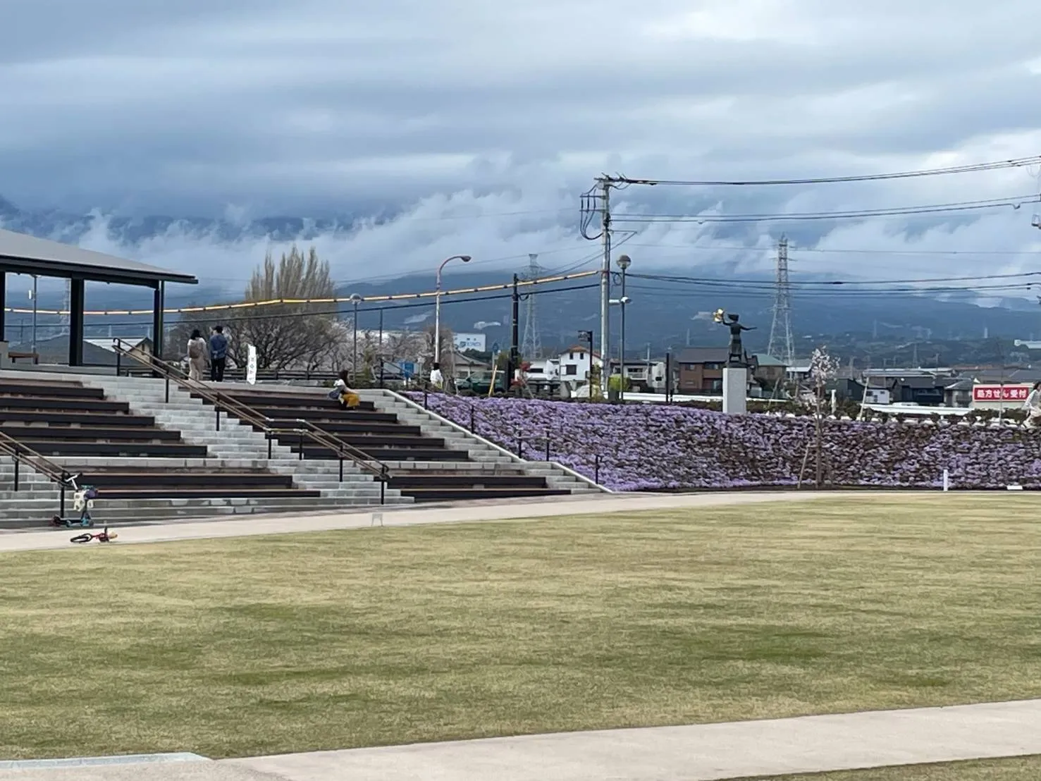 滝とテラス、芝生広場、子供広場、果樹園があり、