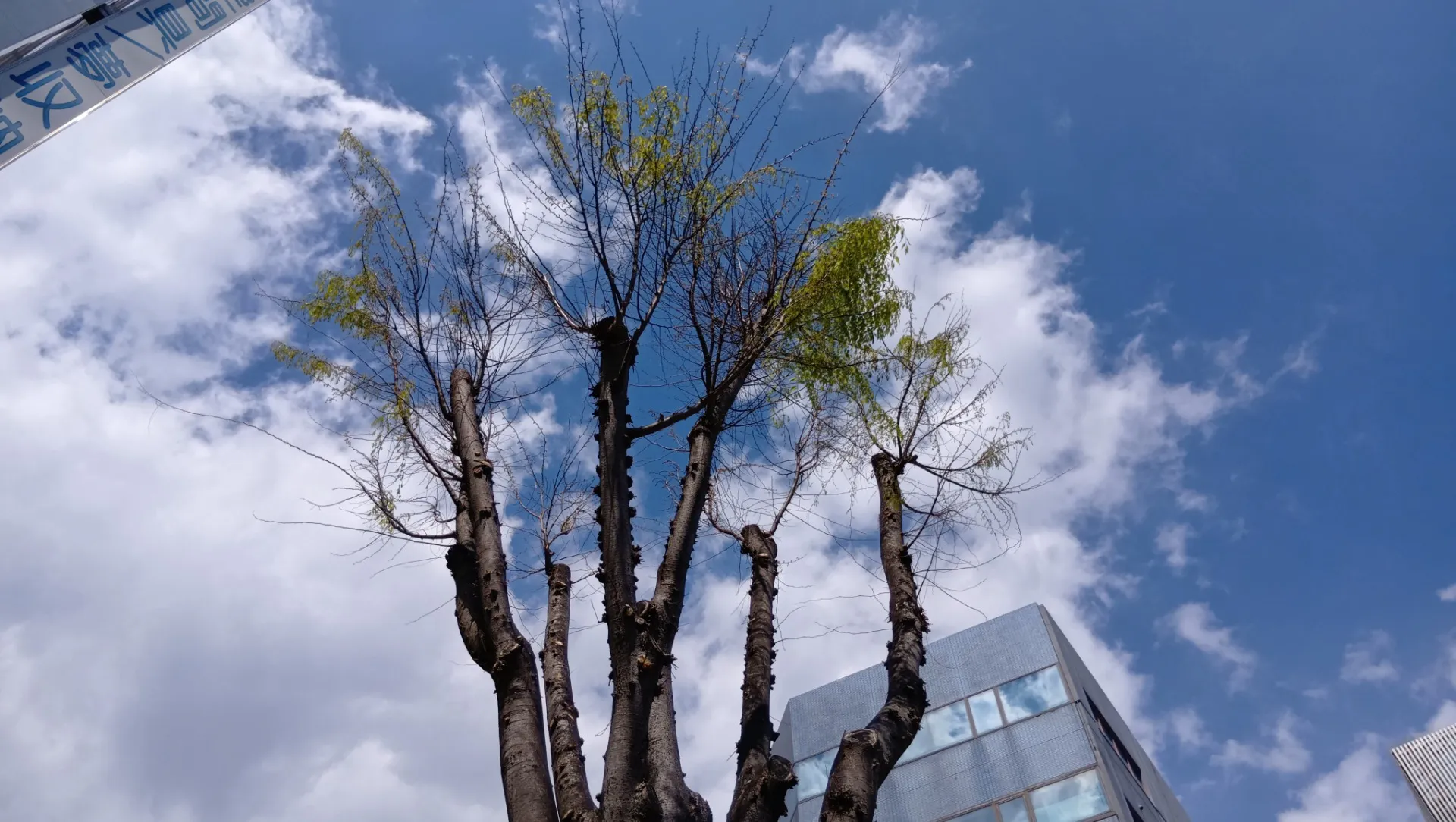 数年前に枝を切り落とし、ちょっと不格好になった木ですが、