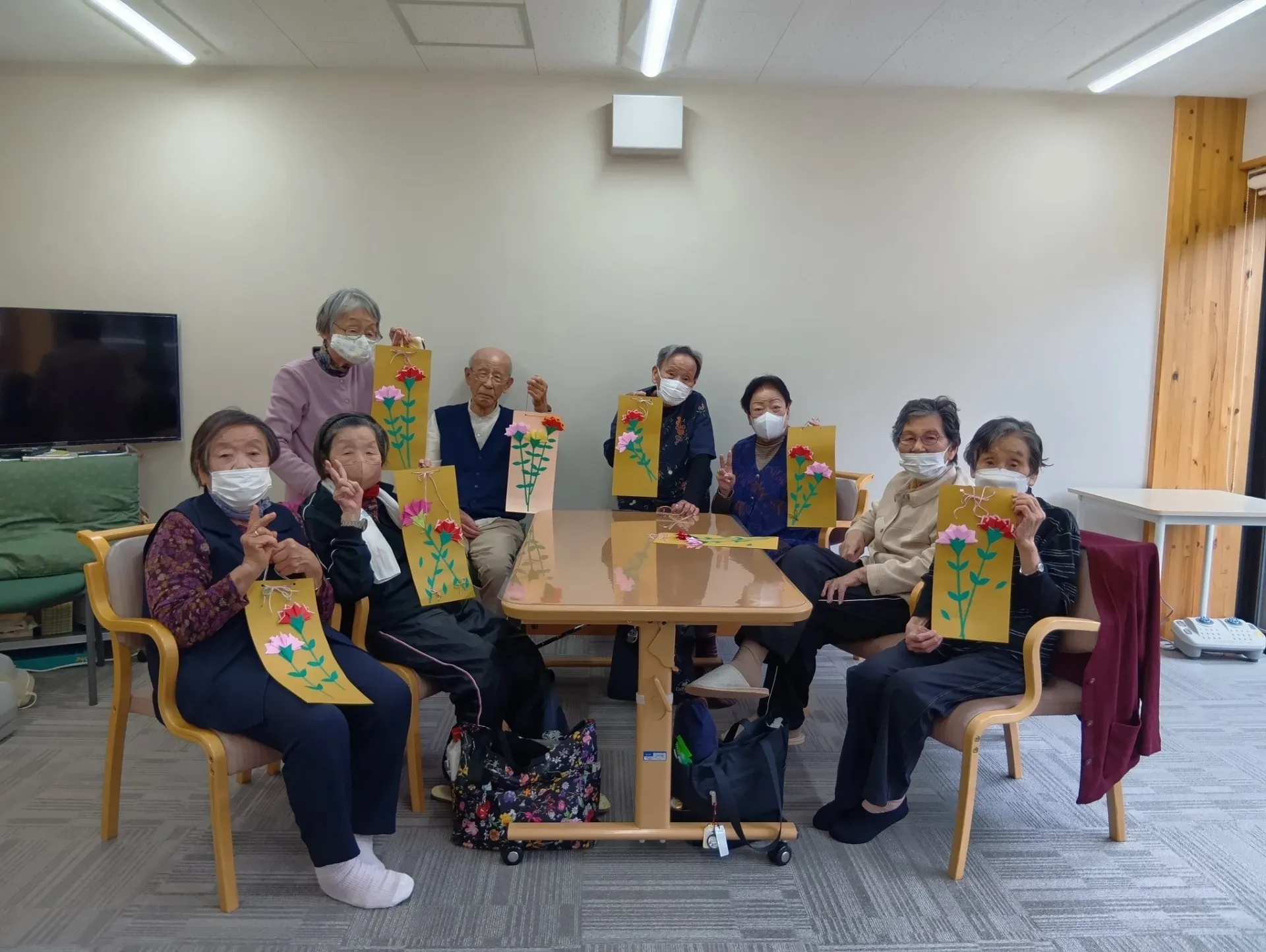 母の日にちなんで折り紙のカーネーションを作りました。