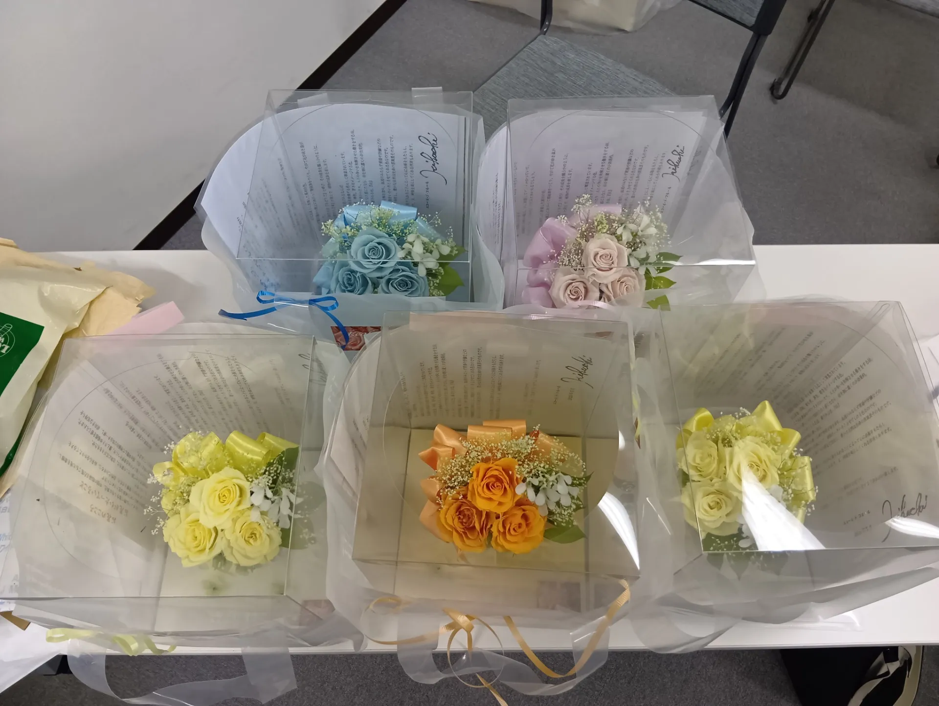 記念品として、ご本人が好きな色のプリザーブドフラワーを
