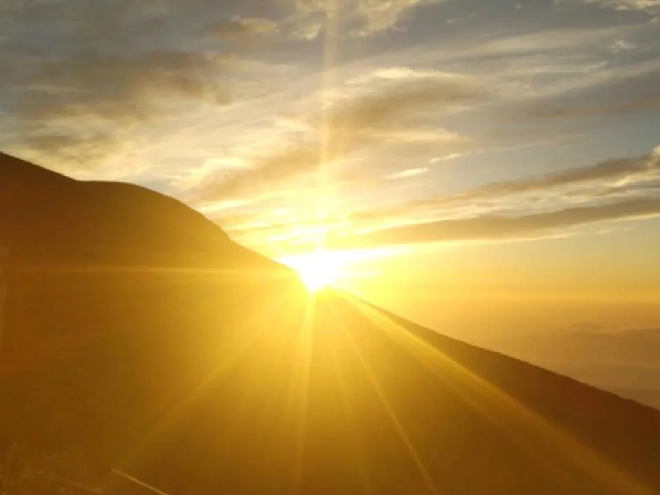 快晴の日は、事業所から山頂の山小屋を