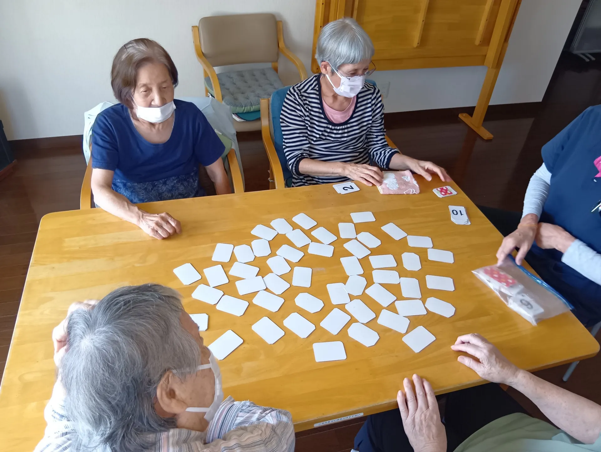 デイサービスどうぞの家ではご利用者様が楽しくできる脳トレを心掛けています。最近では、数字カードを使った「足して10」が大変盛り上がっています。カードをめくり、足し算をして答えが10になればその…