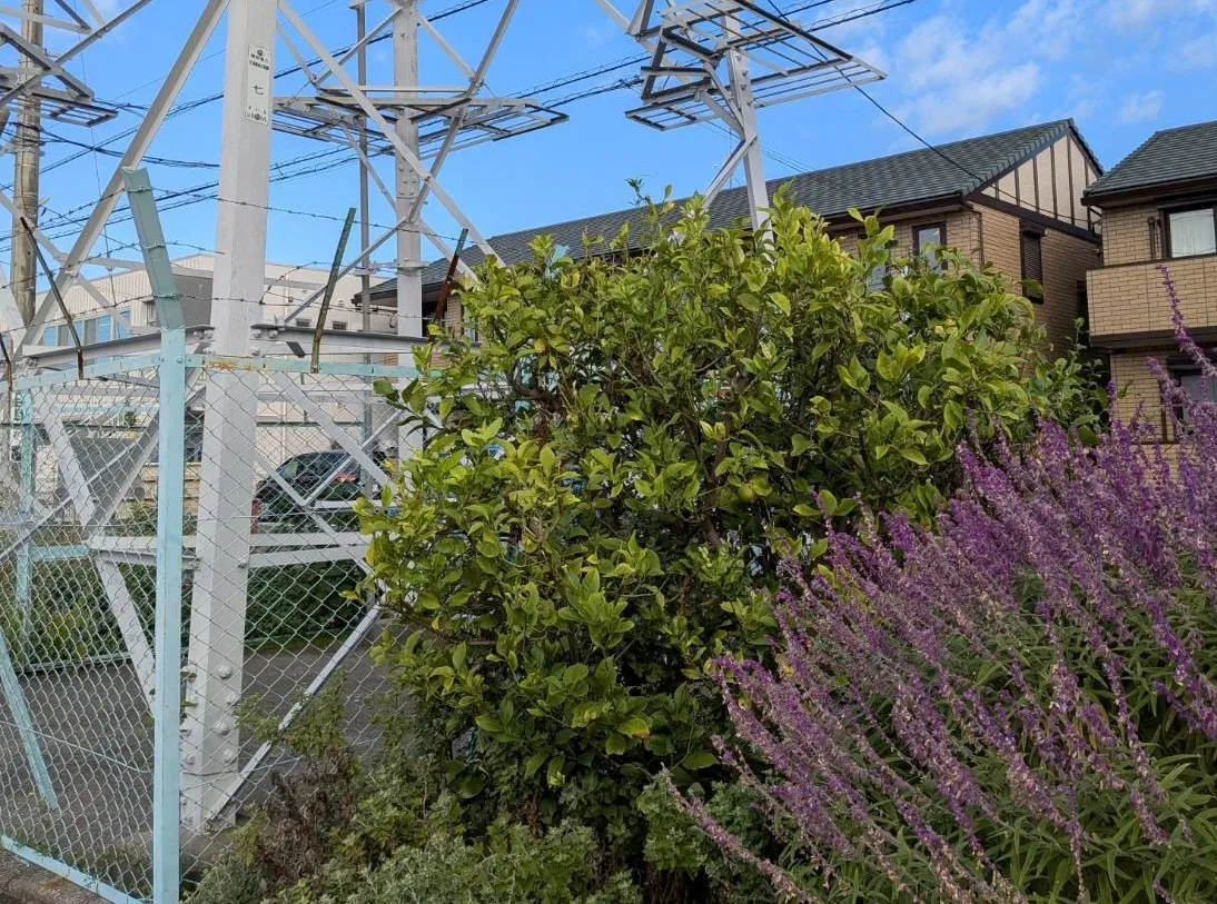 沼津 レモンの木 事業所の花壇にレモンの木があります。鉄塔横にあるレモンの木は電力会社からの要請で、木の上半分近くを切ってしまい、今年は実が生らないかも・・と思っていたのですが最近、何個かの実がついているの…